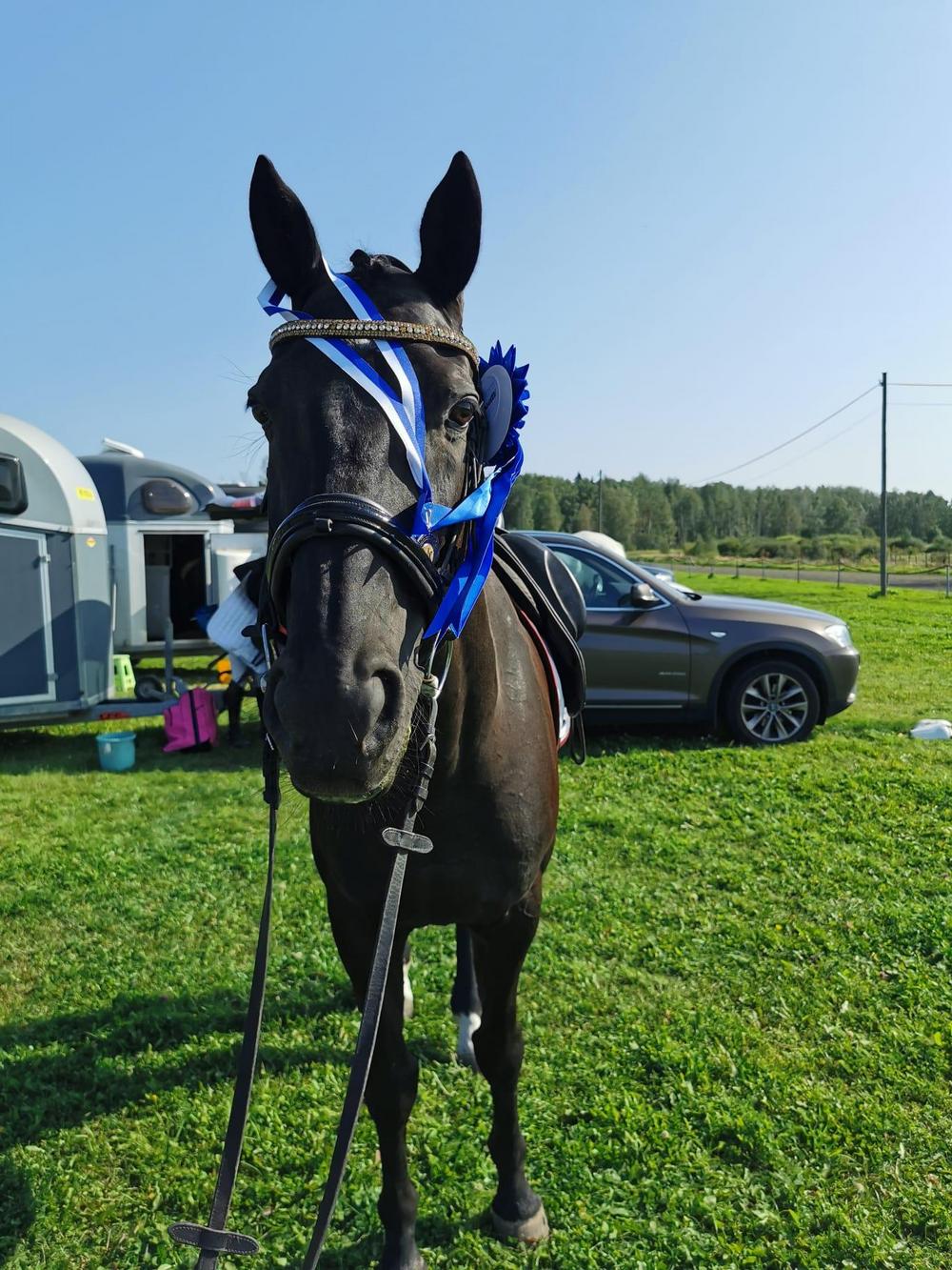🔵 Aluetason kilpailulupaan, jos sinulla on 5 hyväksyttyä tulosta este-, kenttä-, ja/tai kouluratsastuksessa aluetason kilpailuista.